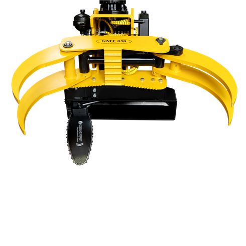 Für Autokräne ab 14 t/m haben wir den Fällgreifer GMT 050 FG entwickelt. Der Holgreifer mit Säge- und Hebefunktion, hydraulischer Steuerung und Kipprahmen wird auf die Standard-Greifereinrichtung des Krans montiert. Damit ist es möglich, mit Ihrem LKW-Kran Bäume bis zu einem Fälldurchmesser von 50 cm in Teile zu zersägen, und die Holzstücke direkt auf Ihren LKW zu verladen.